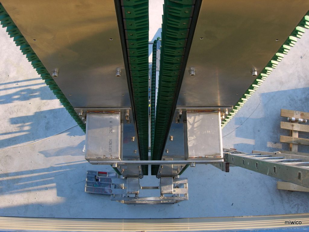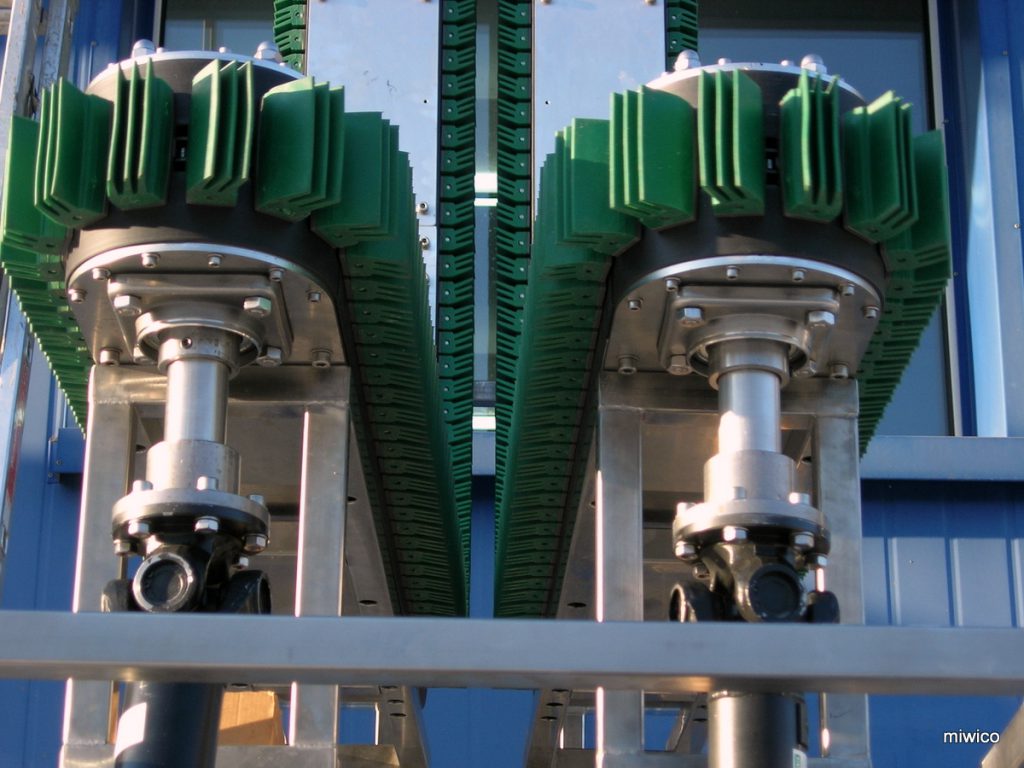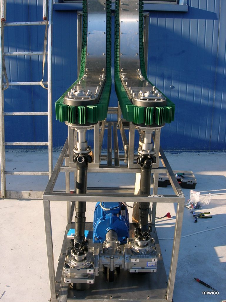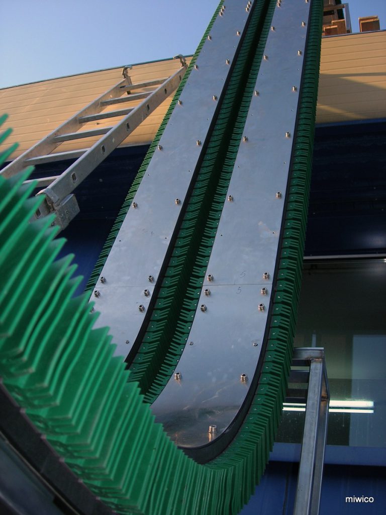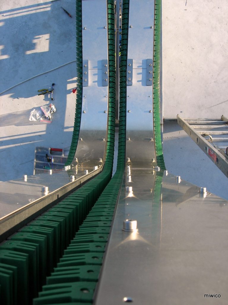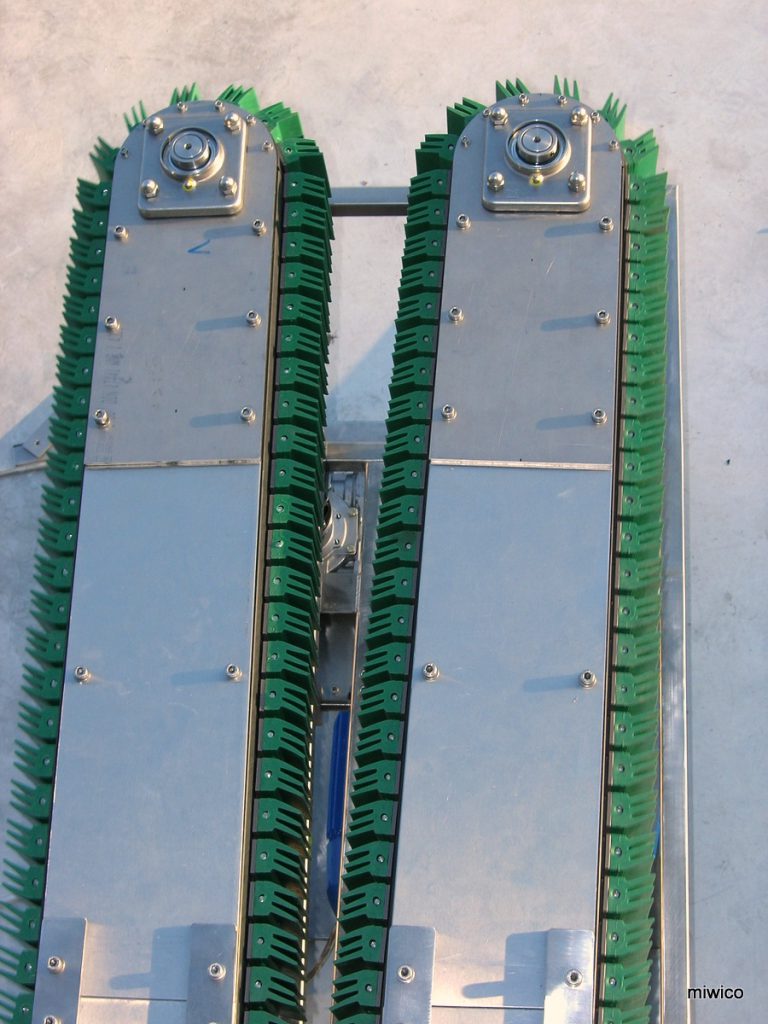 Przenośniki Pionowe Systemy transportu pionowego. W galerii poniżej przenośnik typu Omega, służący do podnoszenia butelek z napojami.
