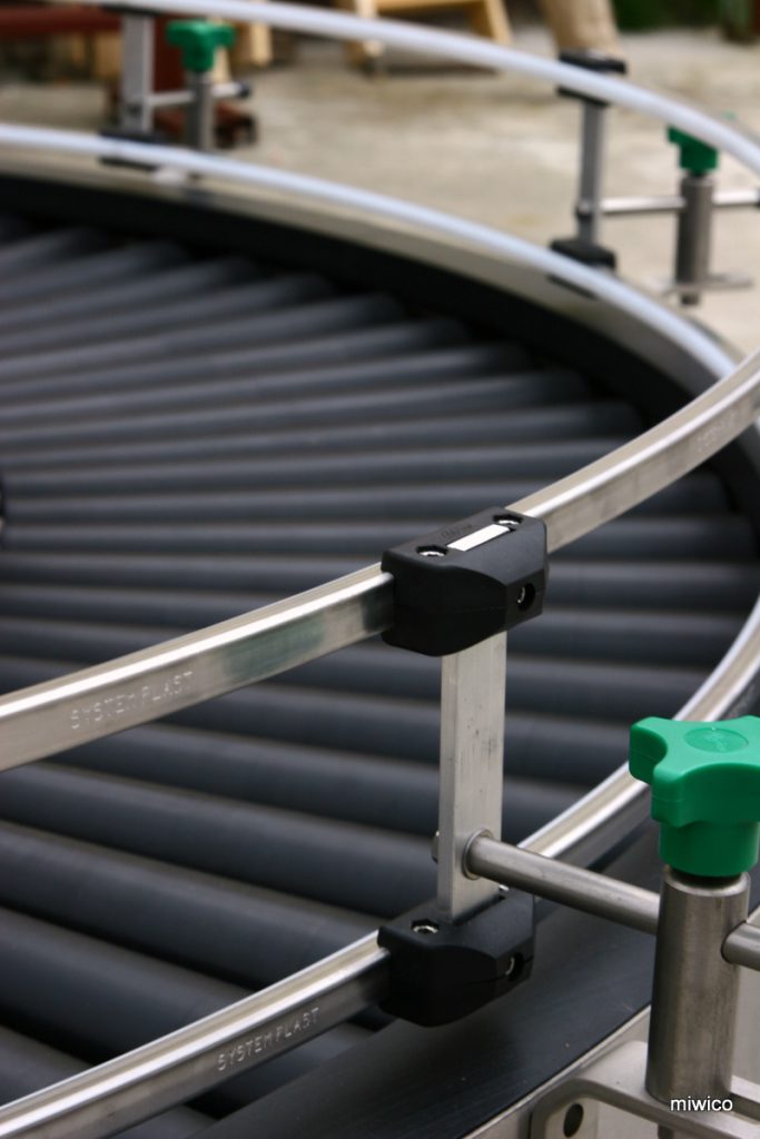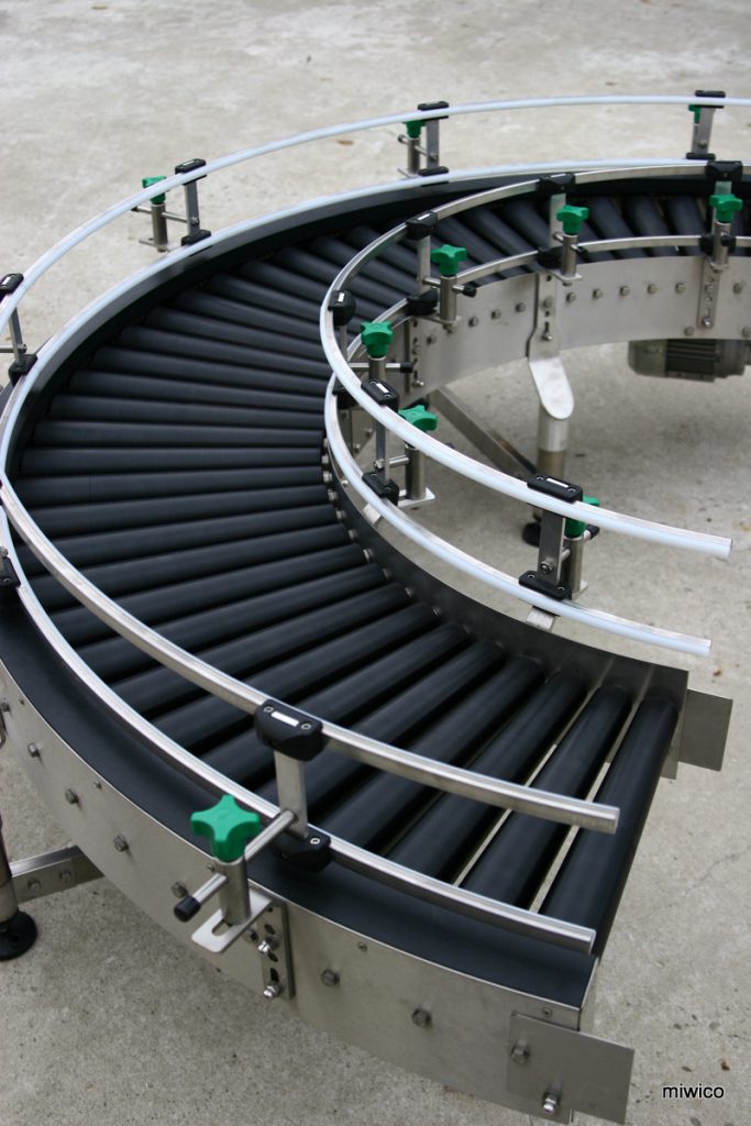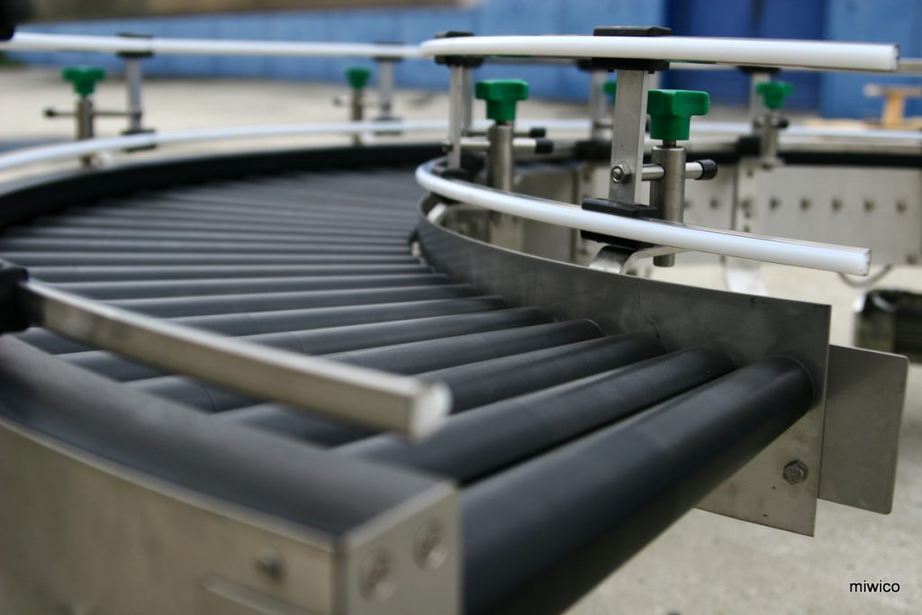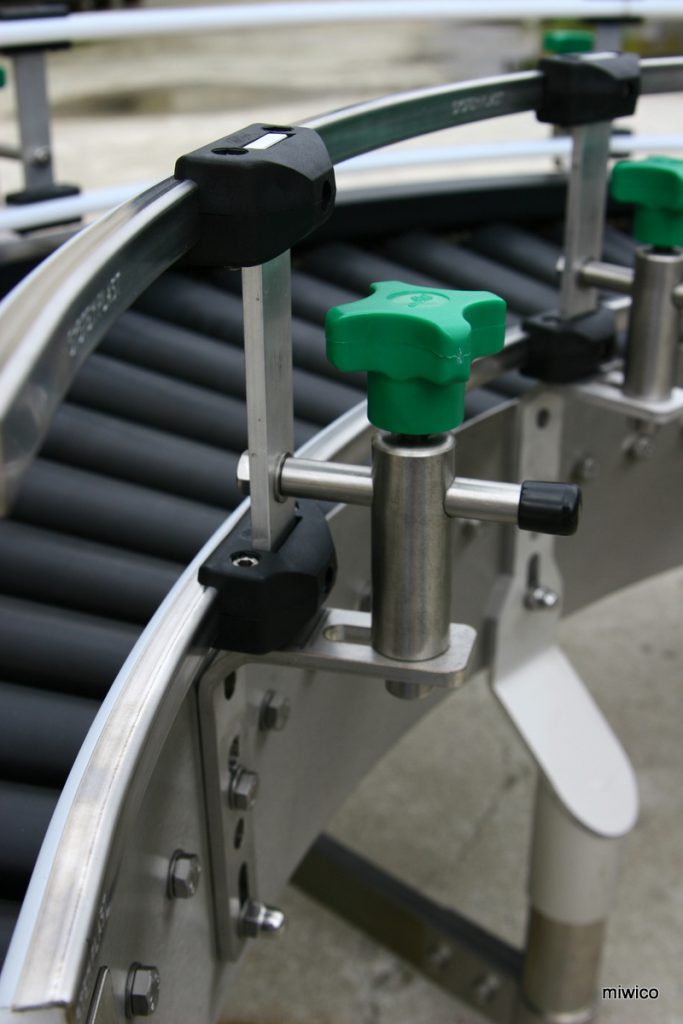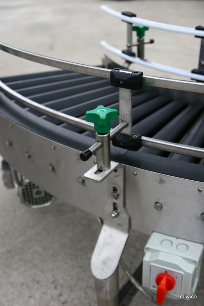 Przenośniki rolkowe mogą być wyposażone w bandy wraz z regulowanymi trzymaczami, których zadaniem jest prowadzenie elementów na przenośniku oraz zapobieganie ich wypadaniu.