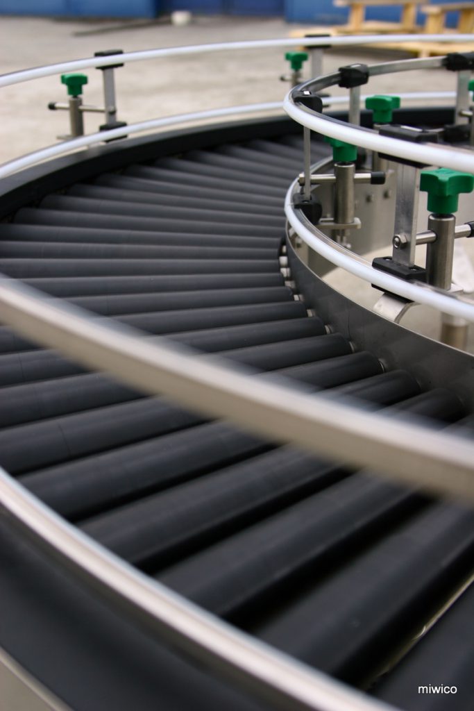 Przenośniki rolkowe charakteryzują się stabilną, zwartą i sztywną konstrukcją. Są wyposażane w rolki do przenoszenia elementów np. opakowań.